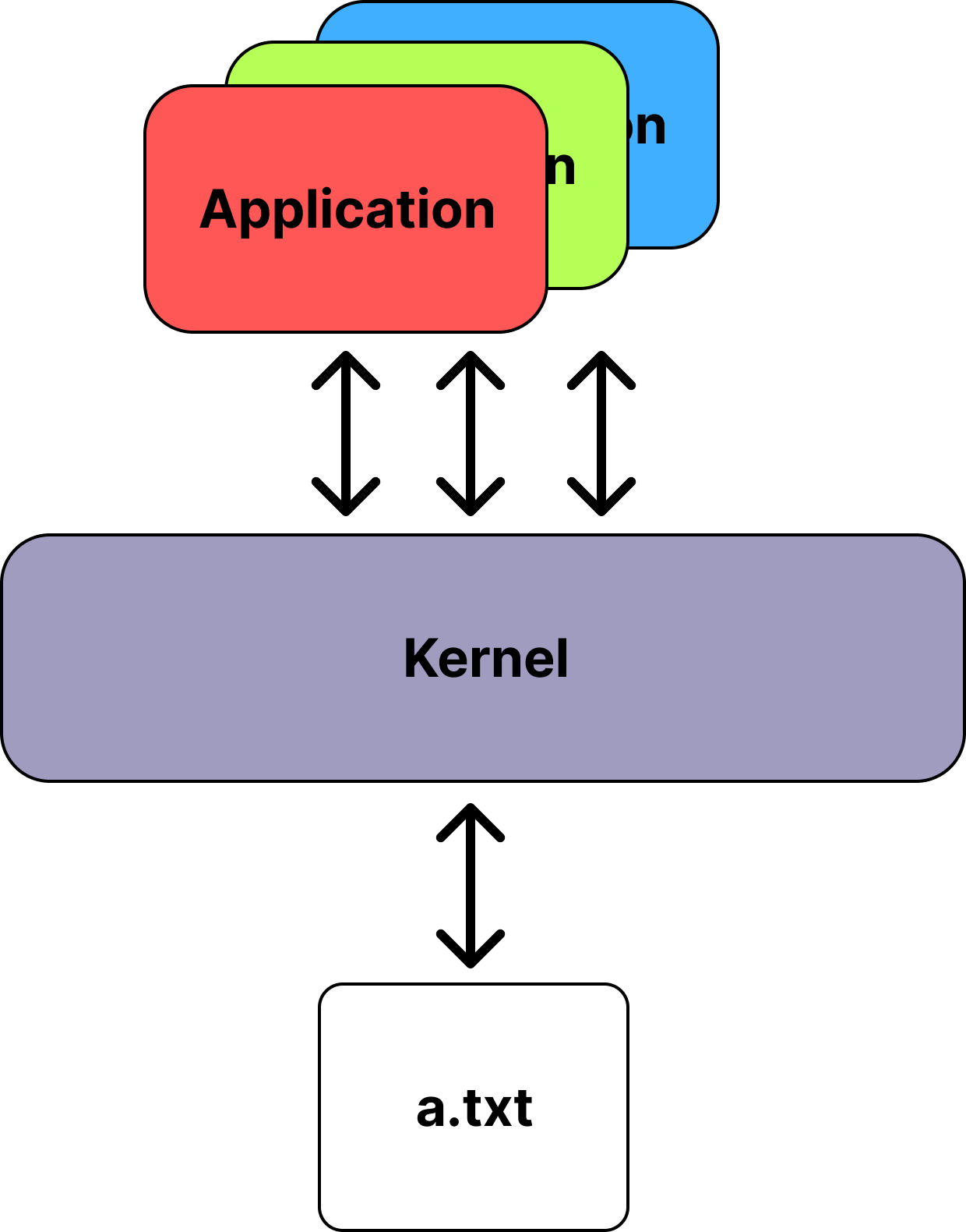 커널 이미지 위의 이미지처럼 프로그램은 직접적인 연결이 아닌 커널을 통한 간접적인 연결이 되었습니다.