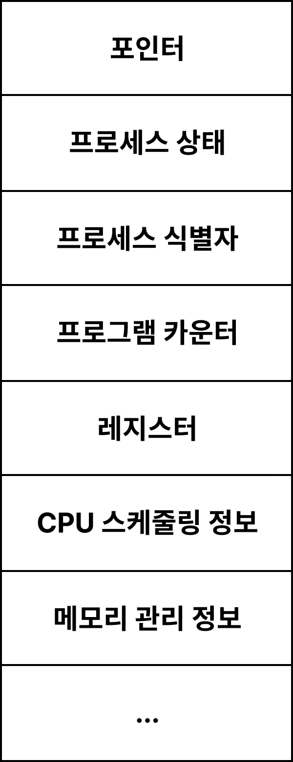 Heap, Stack 영역은 실시간으로 크기가 변할 수 있어 '동적 할당 영역'이라고 부릅니다. 프로세스 제어 블록 (PCB, Process Control Block)