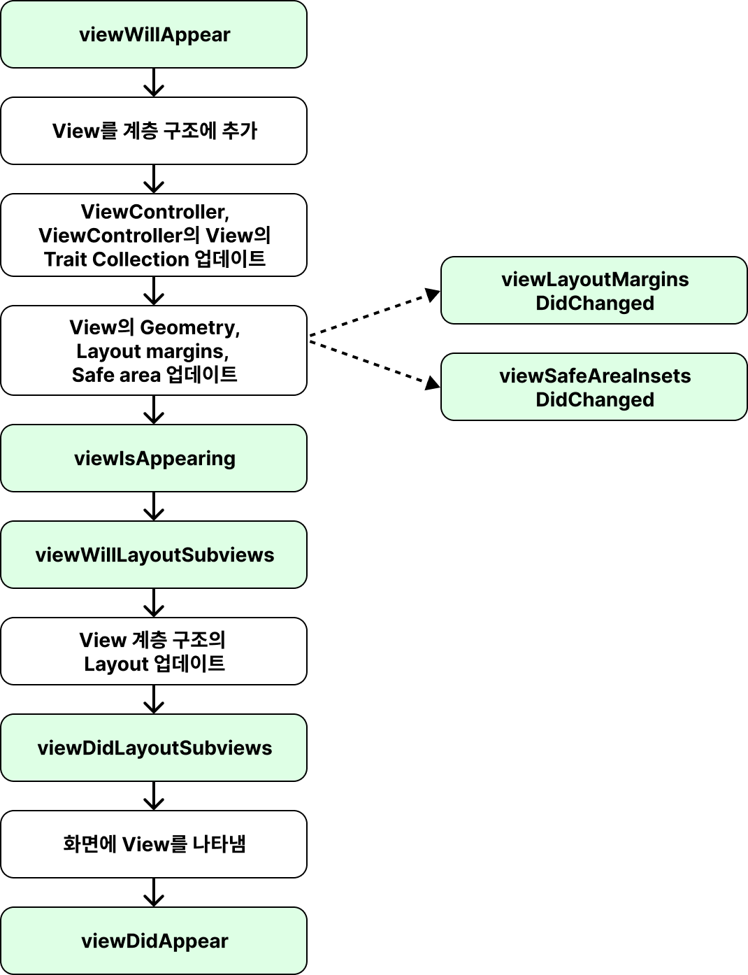 (iOS 13.0 이상 그리고 Xcode 15 (작성일 기준 베타 버전) 에서 ViewController에 viewIsAppearing이라는 메소드가 추가되었습니다.)