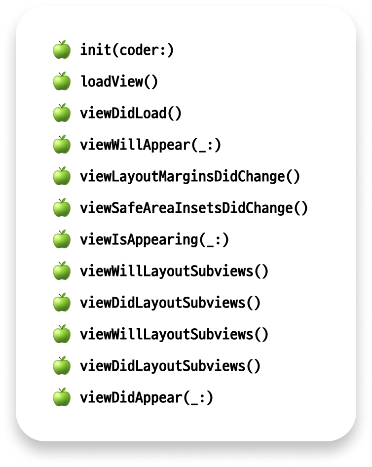 화면에 View를 표시하는 방법 애플 공식 문서에서는 viewIsAppearing(_:) 메소드에서 View에 대한 Content를 업데이트하라고 합니다.