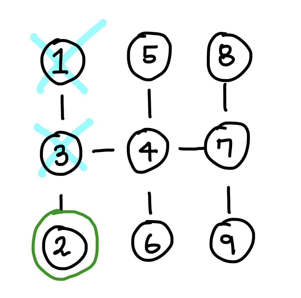 find(2) 가 진행이 되면 2 에서는 더이상 방문할 곳이 없으므로 find 는 종료가 된다.