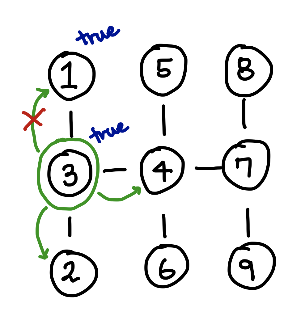 그리고 visited[3] = true, 현재 visited[1] 과 visited[3] 이 true 가 되었고 그 외에는 모두 false 이다.