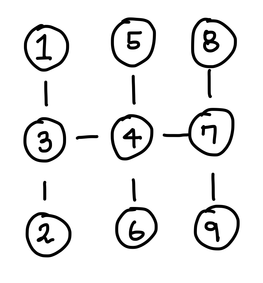 n wires return 9 [[1, 3], [2, 3], [3, 4], [4, 5], [4, 6], [4, 7], [7, 8], [7, 9]] 3 이렇게 주어졌다.