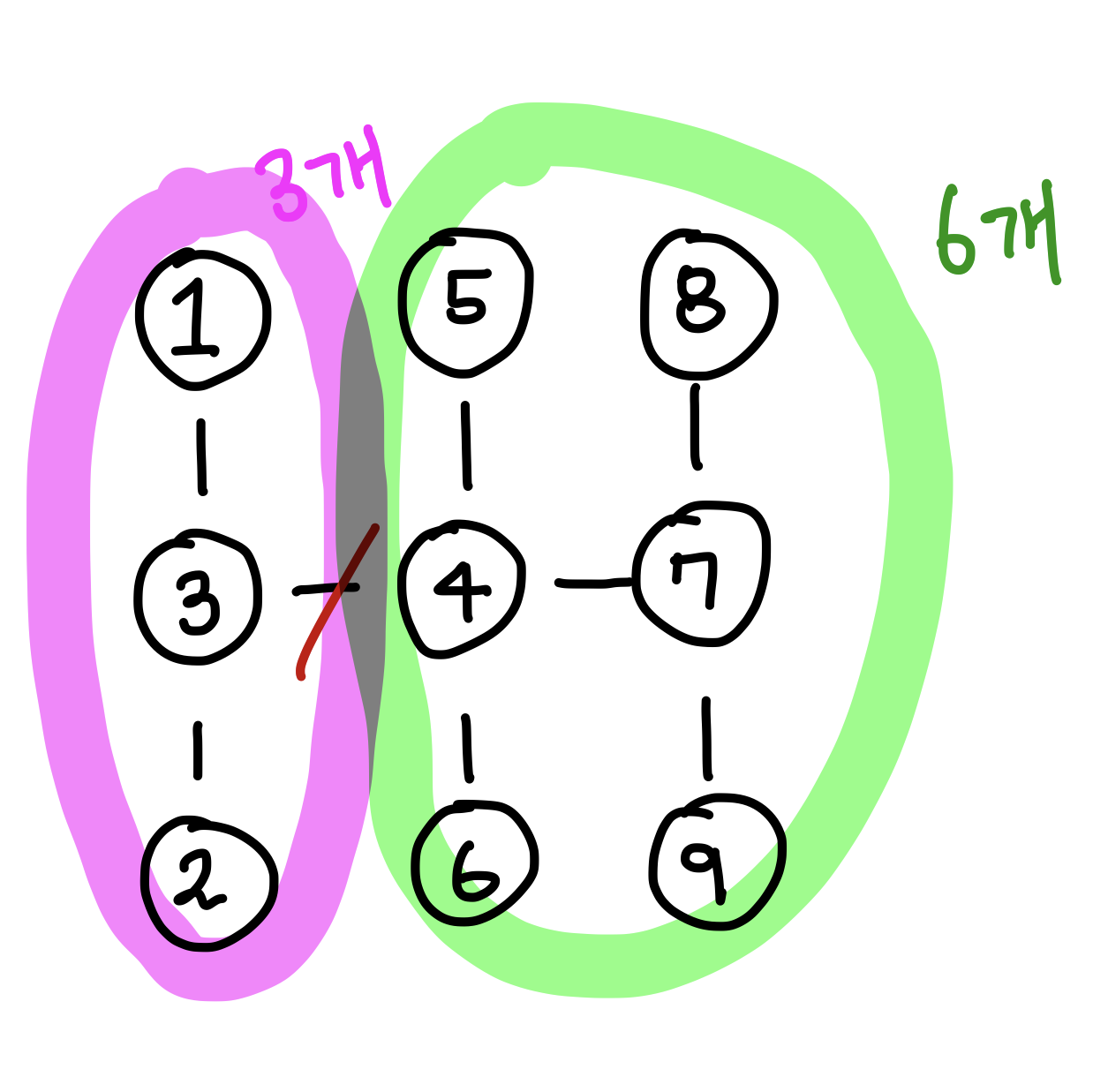 이 중에서 하나의 연결된 edge 를 자르면 2개의 트리가 구성이 된다.